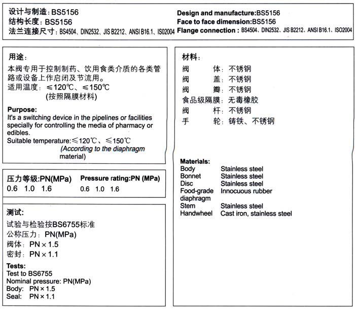 2、若已經由設計單位選定我公司的衛生級隔膜閥產品型號,請按型號直接向我司訂購;